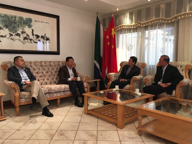 張學(xué)武董事長現(xiàn)場參觀了簽注中心服務(wù)大廳,與簽注中心管理團(tuán)隊(duì)及一線員工進(jìn)行交流,了解簽注中心運(yùn)作并要求簽注中心在工作中要「講政治、重安全、提服務(wù)」,要充分展現(xiàn)港中旅企業(yè)的良好面貌。在南非期間,張學(xué)武董事長還拜會(huì)了中國駐約翰內(nèi)斯堡總領(lǐng)館阮平總領(lǐng)事、駐德班總領(lǐng)館王建州總領(lǐng)事,感謝領(lǐng)館對(duì)簽注中心的支持。