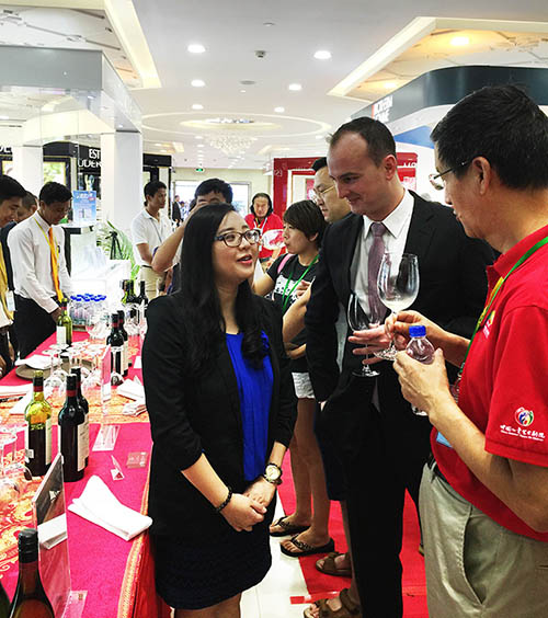 除了以上優(yōu)惠活動,現(xiàn)場游客還體驗到一場吳哥免稅店精心準備的驚喜活動——澳洲杰卡斯葡萄酒品鑒會。這場高端品鑒會現(xiàn)場,顧客頻頻舉杯,沒有中國傳統(tǒng)的“中國式的干杯”,大家在專業(yè)的葡萄酒知識講解中,慢慢品味美酒,免稅店內(nèi)單寧與果香的交響將活動推向又一個高潮。