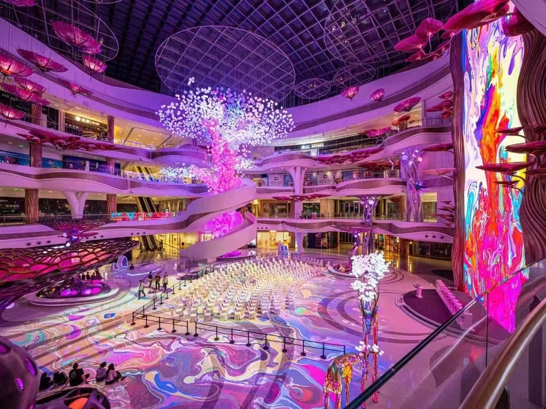 ▲??趪H免稅城項目“AURA天際秘林”中庭(攝于調(diào)試階段)