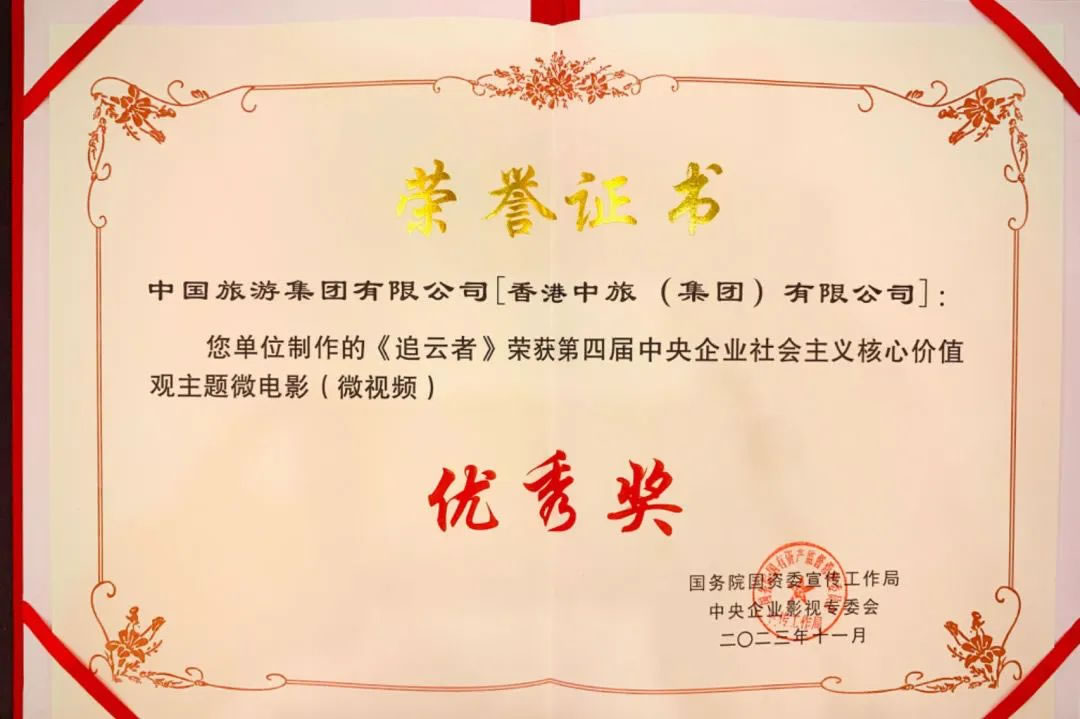 近日,在國務(wù)院國資委宣傳工作局主辦的2023年中央企業(yè)社會主義核心價值觀主題微電影(微視頻)展映征集活動上,中免投資發(fā)展有限公司(中國旅游集團(tuán)中免股份有限公司全資子公司)制作的《追云者》代表中國旅游集團(tuán)從500余部參評作品中脫穎而出,榮獲“第四屆中央企業(yè)社會主義核心價值觀主題微電影(微視頻)”優(yōu)秀獎(敬業(yè)奉獻(xiàn)類)。
