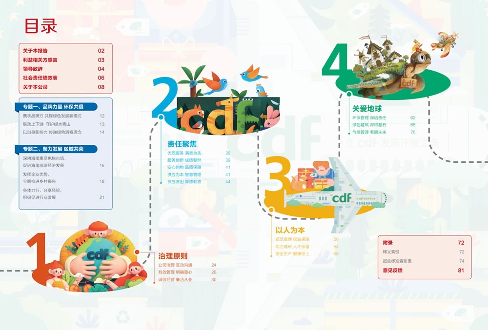 值得注意的是,本次ESG報告封面和部分內(nèi)頁插圖選自“在cdf發(fā)現(xiàn)環(huán)保之美”環(huán)保公益海報設計大賽獲獎作品,希望通過異彩紛呈的審美創(chuàng)意、元素碰撞,進一步傳遞綠色發(fā)展的美好愿望。