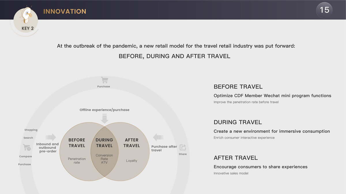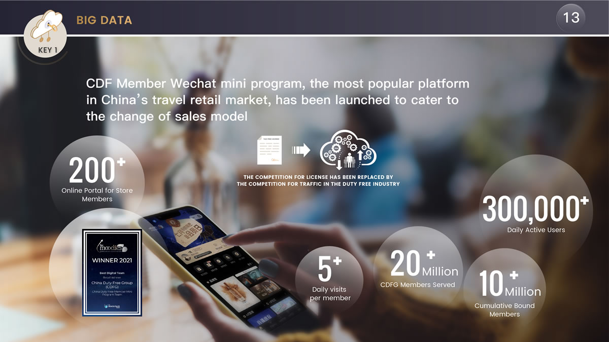 陳國(guó)強(qiáng)表示,"我們推出了基于會(huì)員的線上平臺(tái)cdf會(huì)員購(gòu),此外還積極迎合銷(xiāo)售模式的變化,推出了基于中免2000多萬(wàn)會(huì)員的會(huì)員小程序,在流量為王的時(shí)代建立了中國(guó)旅游零售市場(chǎng)最大的流量平臺(tái)。"他介紹稱(chēng),"通過(guò)兩年多的運(yùn)營(yíng),該會(huì)員小程序日活躍用戶(hù)達(dá)30多萬(wàn),成為中免甚至是中國(guó)旅游零售重要的流量平臺(tái),未來(lái)機(jī)場(chǎng)口岸的客流恢復(fù)后還將成為打通中免線上線下的重要流量入口。"這一舉措也得到了業(yè)內(nèi)的高度認(rèn)可,榮獲穆迪2021年度最佳數(shù)字團(tuán)隊(duì)獎(jiǎng)。