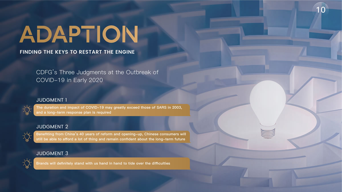 陳國(guó)強(qiáng)指出:"在三年前疫情剛剛爆發(fā)時(shí),我做出了3個(gè)判斷:一是這場(chǎng)疫情的持續(xù)時(shí)間可能會(huì)大大超過(guò)2003年的非典,我們必須做出長(zhǎng)期的應(yīng)對(duì)規(guī)劃;二是雖然疫情會(huì)帶來(lái)各方面的不利影響,但在中國(guó)40年改革開(kāi)放的紅利下,消費(fèi)者仍保持著強(qiáng)勁的消費(fèi)能力并對(duì)未來(lái)長(zhǎng)期充滿(mǎn)信心;三是品牌方一定會(huì)和我們站在一起,共謀方略,共渡難關(guān)。"